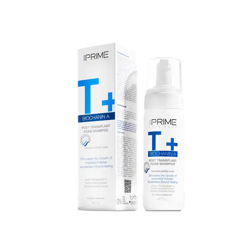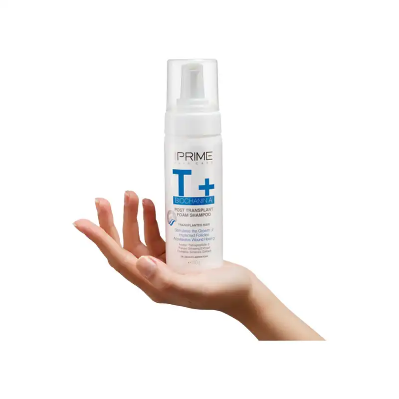 شامپو فوم پس از کاشت مو پرایم دارای پایه ملایم، فاقد سولفات، مناسب شستشو و پاکسازی پوست سر حامل فولیکولهای پیوندی پس از انواع روشهای کاشت مو مانند SUT، FIT،FUT و سایر روشهای ترکیبی میباشد.